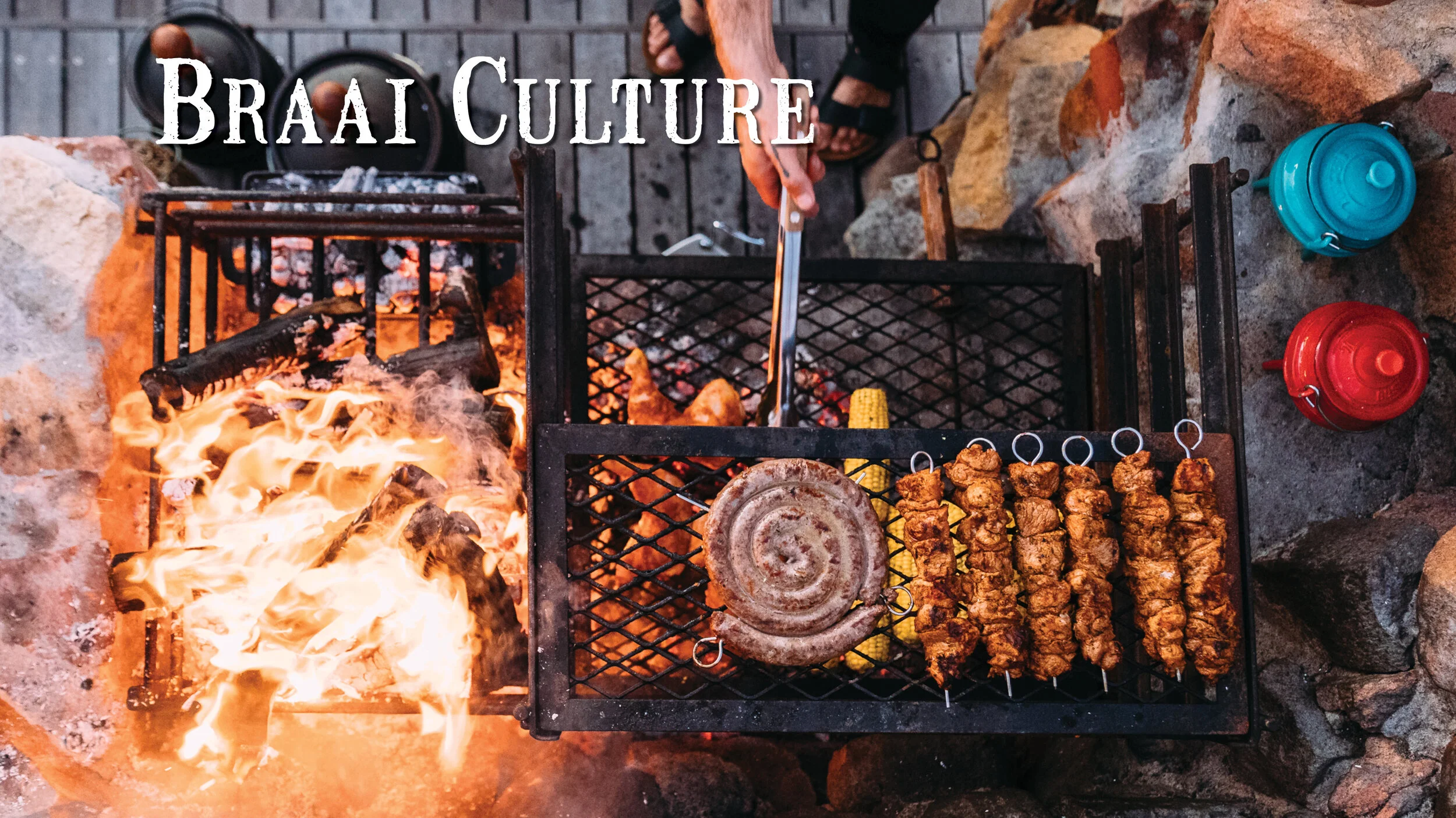 Verb (braais, braaied, braaing) to grill food over an open fire.